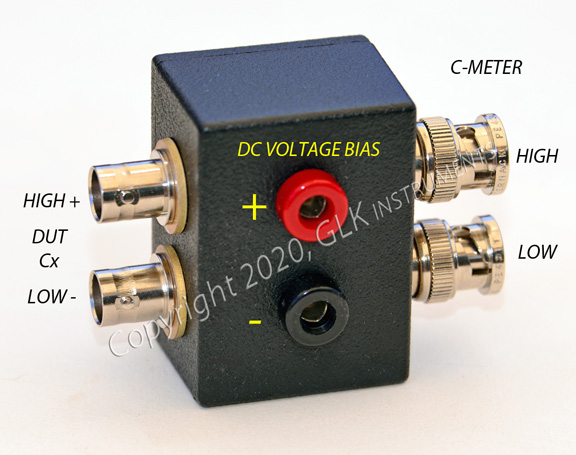 Description -The Model 3000 Capacitance Meter is still the first commercially available low cost, high accuracy instrument designed exclusively for the measurement of very small value capacitors and capacitors whose size and shape are not conveniently handled by conventional sockets, clamp fixtures, or alligator clip leads. The Model 3000 is particularly useful for measurement of chip capacitors whose small size precludes the use of identifying marks. Other uses include measurement of the capacitance between the traces on a printed circuit board, thin film capacitors, MOSFET gate capacitance, microstrip or stripline capacitance, etc. The analog output and wideband options provide a convenient and low cost solution for characterization of the dynamic capacitance of MEMs devices. Complete specifications can be found in the Operating Manual.The Model 3000 uses a patented* switched capacitor circuit and ratiometric measurement techniques to eliminate errors due to stray capacitance-to-ground and component drift. This unique circuit allows the test capacitor or structure to be remotely connected to the meter by two, miniature, shielded probes or by coaxial cables without affecting the zero, accuracy, or resolution of the instrument. NOTE - Most LCR and capacitance meters measure impedance and calculate capacitance from the reactive component of the impedance. While useful for many circuit application, particularly RF circuits, this is not may represent the capacitance calculated from the geometrical and fringing fields of the actual physical capacitor. Our Model 3000 Capacitance Meter accurately measures capacitance using the fundamental physical relationship between charge and voltage, Q=CV. ANALOG OUTPUT - Although the resolution of the Model 3000 LCD display is limited to 3 1/2 digits, higher resolution can be obtained using the low noise, 0 to 200 mV analog output signal on the back panel. When the analog output signal is connected to an external high resolution DVM such as an HP 34401A, Keysight 3458A, or Solartron 7061, the ultimate resolution and reading-to-reading noise of the Model 3000 is less than 10 ppm as shown in this plot of a 200pF air capacitor. DIGITAL OUTPUT - The USB port provides the user with additional range, resolution, and the ability to log data to a file. The USB port is fully supported by LabVIEW©. USB drivers and a LabVIEW© demonstration programs are available for the Model 3000 Capacitance Meter. SOFTWARE - The Model 3000 LabVIEW© demonstration program is a standalone executable file that requires only the LabVIEW© runtime engine to load and run. When the LabVIEW© demonstration program is launched, a virtual Model 3000 front panel is displayed along with additional functions that include plots of the meter readings and histogram, offset adjustments, sample rate, and data logging to a disk file. This is a screen shot of the LabVIEW© demonstration program, a screen shot showing baseline noise limit (~27aF) with zero input on the 2pF range, and a screen shot showing the stability over 26 hours. For many users, the demonstration program maybe all that is needed to acquire and store data. For users who wish to customize the demonstration program or write their own virtual instrument program, we provide a complete set of LabVIEW© VI's. The Model 3000 LabVIEW© demonstration program, USB drivers, LabVIEW© VI's, and software installation instructions are provided on the application DVD shipped with each instrument, or they can be downloaded here. We currently support select LabVIEW© versions 8.2, 8.5, 2009 through 2023. Contact us if you need support for a LabVIEW© version not listed in the download section. MULTIPORT OPERATION - LabVIEW© software version 1.21 allows up to 8 Model 3000 Capacitance Meters to be connected to one computer using a multiport-powered USB hub or over a network using a multiport-powered USB-over-IP hub. This is a screen shot of LabVIEW© version 1.21 showing meter selection button. Contact us for recommended multiport-powered USB or USB-over-IP hubs. CALIBRATION - The basic accuracy of the Model 3000 is +/- (0.1% of reading +2 digits). Each unit is calibrated using capacitor standards maintained by GLK Instruments. These standards are compared to our primary GR 1404-A Reference Standard Capacitor. Traceability to NIST is provided at no extra charge. Recommended calibration cycle is 24 to 36 months. *United States Patent No. 4806846, LabVIEW© is a registered trademark of National Instruments www.ni.com Return to top of page Accessories - Calibration Standards, DC Bias Adapter, LCR Meter Test Fixtures, & Short-Open Standards CALIBRATION STANDARDS - We offer a line of low cost, 2-BNC (3-terminal) capacitor standards for a quick calibration check of the Model 3000 Capacitance Meter. Available values are: 10pF, 100pF, 1nF, 10nF, and 100nF. All capacitor standards are serialized with barcode for inventory tracking. BIAS ADAPTER - P/N 2901500-000 is available for use with the Model 3000 Capacitance Meter for device characterization under DC voltage bias. LCR METER TEST FIXTURE ADAPTER - Capacitor standards can be checked and calibrated using our custom, 4-BNC (5-terminal) to 2-BNC (3-terminal) LCR Meter Test Fixture Adapter (P/N 2901600-100) on any calibrated LCR meter with 22mm BNC terminal spacing. All LCR Meter Test Fixture Adapters are serialized with barcode for inventory tracking. We also have a low cost, 4-BNC to 3-terminal banana jack test fixture adapter (P/N 2901600-200) to check the calibration of IET/GenRad 1409-series Standard Capacitors or to check values of leaded capacitors, inductors, and resistors using your existing LCR meter. Recommended LCR meters include: Keysight or Agilent E4980A, E4980AL, E4981A Capacitance Meter, IET GenRad 1693 Precision LCR Meter, or Rohde & Schwarz LCX100 LCR Meter. SHORT-OPEN STANDARDS - These calibration standards are available for use with the LCR Meter Test Fixture Adapter for LCR meter shor